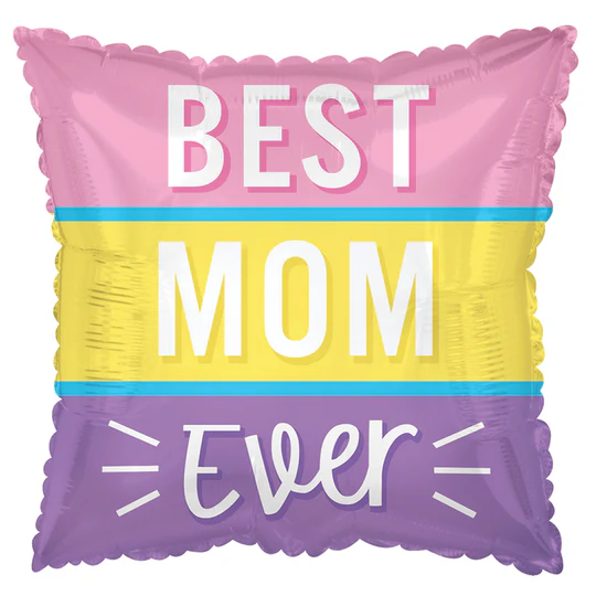 18" Best Mom Ever Foil Balloon Package = 5 Foil Helium Balloon Printed on 2 sides. BalloonsFast.com Located in the USA. Fast Same Day Shipping