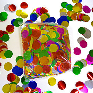 Confetti Multi Color Confetti Metallic 1" Circles, this confetti is popular for putting inside clear balloons theater and retail applications as well for weddings, gender reveal parties and New Year Celebrations.